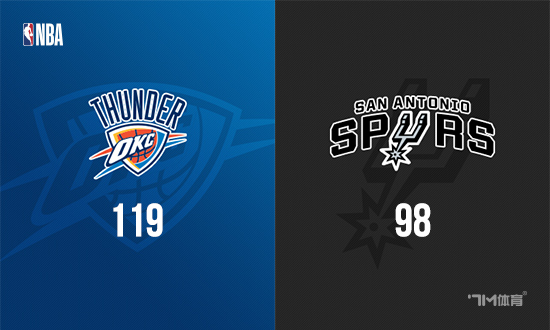 开场后马刺表现相当强势,卡斯尔率先扣篮,随后文班亚马隔扣霍姆格伦,不过雷霆在亚历山大和杰伦·威廉姆斯带领下稳扎稳打咬住比分,随后场上比分连续打平,雷霆在首节结束前打出一波7-0建立领先。第二节场上局面依旧十分胶着,马刺紧追不舍多次将比分追平,但始终未能完成反超,雷霆半场过后领先3分。易边再战,雷霆率先打出11-0攻势将分差拉大,马刺一度连得7分止血,但随后他们进攻再度哑火,雷霆又是一波14-1将比分拉开。最后一节马刺一度掀起反扑追回一些分数,但雷霆及时稳住阵脚,始终将场上分差维持在两位数,最终雷霆119-98轻取马刺取得4连胜,马刺遭遇2连败。