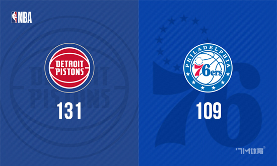 比赛开始,活塞上来9-2建立主动权,76人进攻端办法不多,坎宁安连续助攻带队领先双位数,贾巴里·沃克联手佩恩替补止血,首节活塞领先9分,次节许尔特连中三分扩大领先,但76人全民皆兵回应9-0后再打出8-0咬住比分,次节双方打成33平。下半场,双方继续拉锯战,邓罗连续三分助活塞一波10-2直接领先到20分以上,三节活塞领先到23分,末节双方展开拉锯战,活塞保持20几分领先,随后活塞换上替补练兵,最终活塞131-109轻取76人。