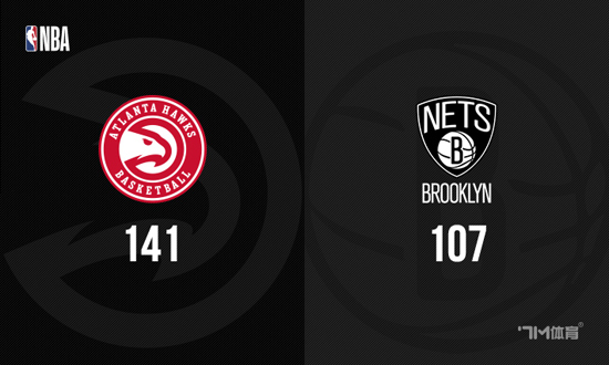 比赛开始,老鹰上来就全面开花轰出25-8不错开局,篮网全民皆兵追分,最后2分钟篮网8-0追至差10分,次节马拉奇·史密斯接连三分继续追近比分,但库明加三分后老鹰一波9-0重新领先双位数,随后双方展开拉锯战,半场老鹰领先16分。下半场,双方围绕着十几分领先继续拉锯战,老鹰首发五虎轮番发力,三节老鹰还领先13分,末节老鹰接连外线发炮拉开20分以上领先,随后双方很快练兵,最终老鹰141-107轻取篮网。