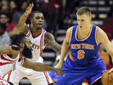 纽约尼克斯(8胜6负)在客场保持强势。虽然安东尼只得到14分,但波尔津吉斯表现抢眼,他得到24分、14个篮板和7次盖帽,尼克斯队在第四节最后关头连得7分取得领先,尼克斯队在客场107-102战胜休斯敦火箭队(5胜9负)。尼克斯队取得4连胜,火箭队遭遇2连败。尼克斯队的波尔津吉斯得到24分、14个篮板和7次盖帽,阿弗拉罗得到16分和6个篮板 …… …… [详细]